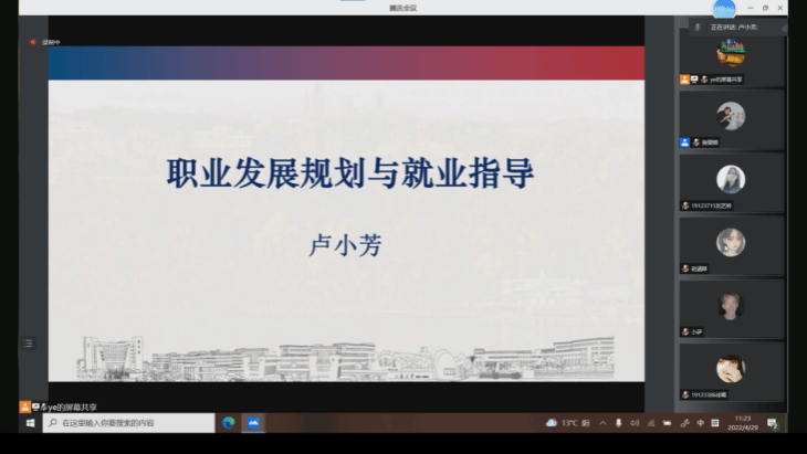 在优秀学子的分享之后,卢小芳老师根据往年的升学及就业情况进行了分析,进行了职业发展规划和就业指导。在实习的投递上,卢老师认为简历的细节以及经历需要贴合投递岗位的要求,并且需要在不同阶段积累不同的经历,以充实自己的简历,从而更好地得到理想岗位offer。