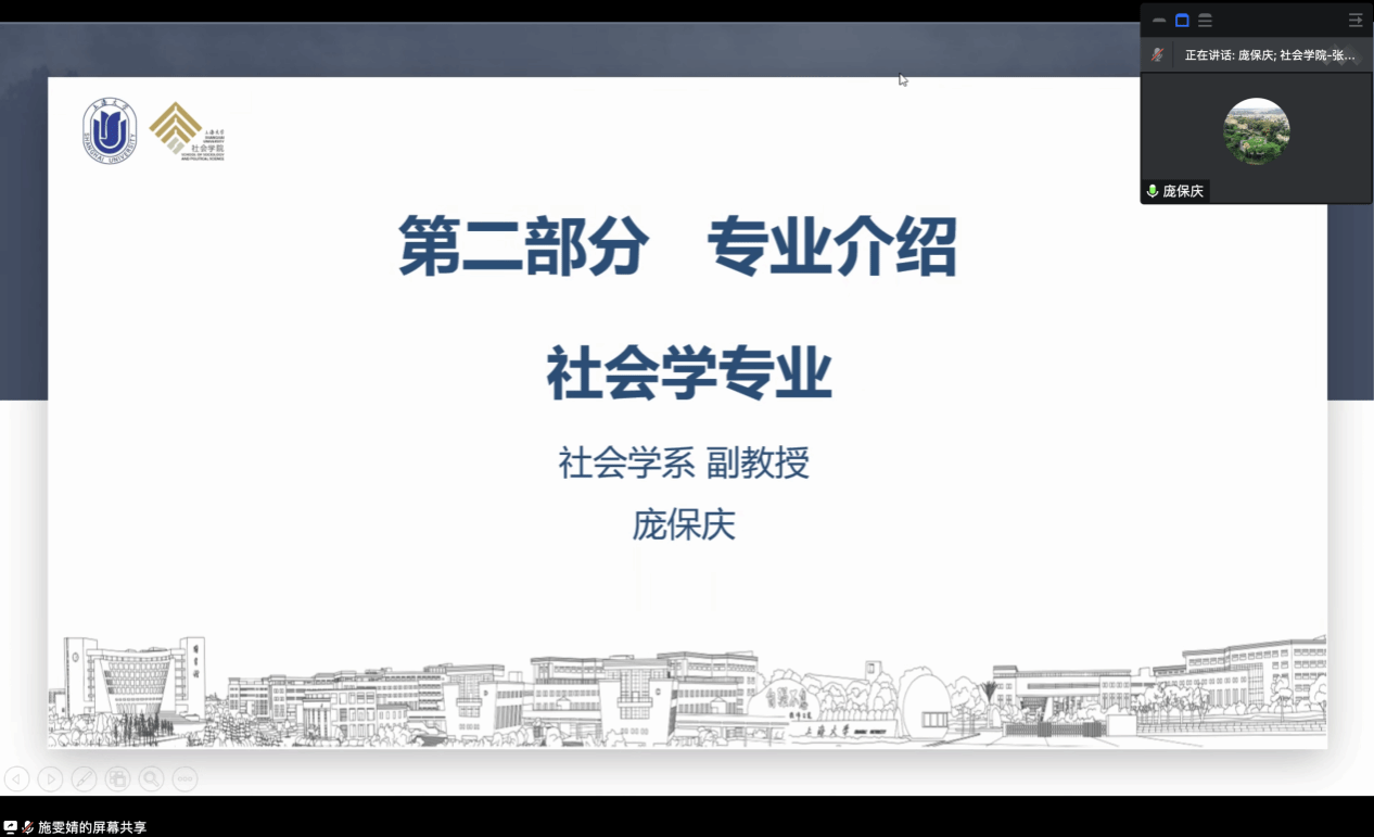 随后,庞保庆老师从专业课程建设实施框架及专业课概况两方面介绍了社会学专业情况,他希望同学们能够在学科交叉融合、文理渗透的人才培养模式中,锤炼更多专业本领和实践技能。