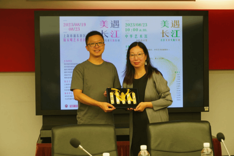 8月23日上午十点,实践团的师生们齐聚中华艺术宫,聆听了中华艺术宫副馆长、上海美术学院美术馆副馆长马琳的主题为《美术馆进入社区新路径》的演讲。最后,四川美术学院带队教师向嘉宾赠送了《吾老吾幼吾生:中国社区美育行动计划》《共在共情共生:中国社区美育行动计划》两本书籍和“虎溪计划”的文创产品。
