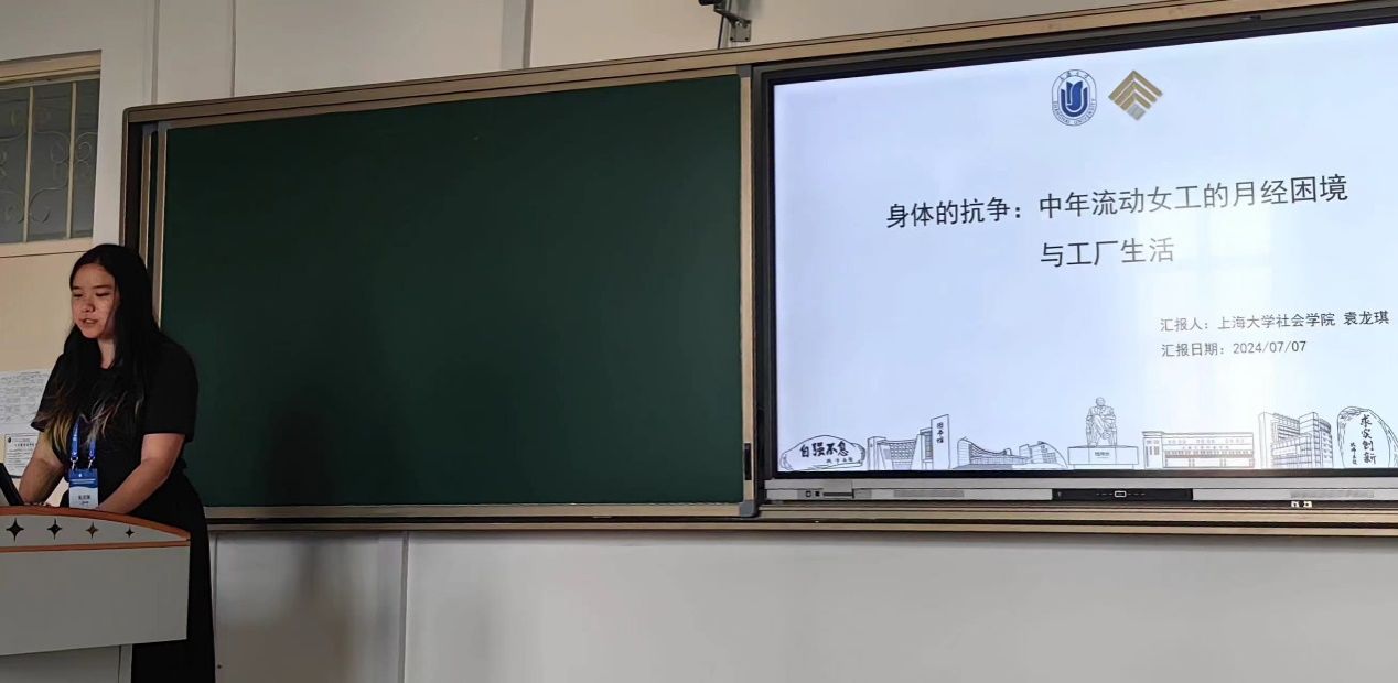 袁龙琪以《身体的抗争:中年流动女工的月经困境与工厂生活》为题,进行了汇报。研究针对中年流动女工这一特定群体,深入探讨了她们对月经问题的认知和态度,以及月经羞耻对她们身份认同和生活质量的影响。通过深度访谈方法,聚焦她们在工厂环境中的月经羞耻与困境,包括长时间工作和高强度体力劳动对月经健康的影响,以及由此带来的心理负担。同时,研究也展现了这些女工在面对月经困境时所展现出的抗争精神,以及她们如何通过互助和支持打破月经禁忌,增强社群内的联系。这些发现为理解和改善中年流动女工的生活境遇提供了新的视角和实证支持。