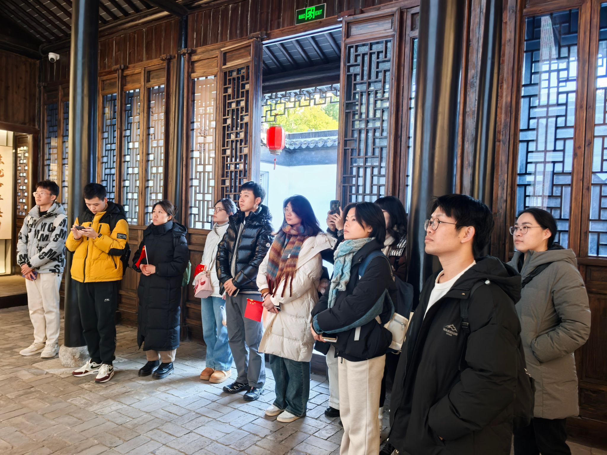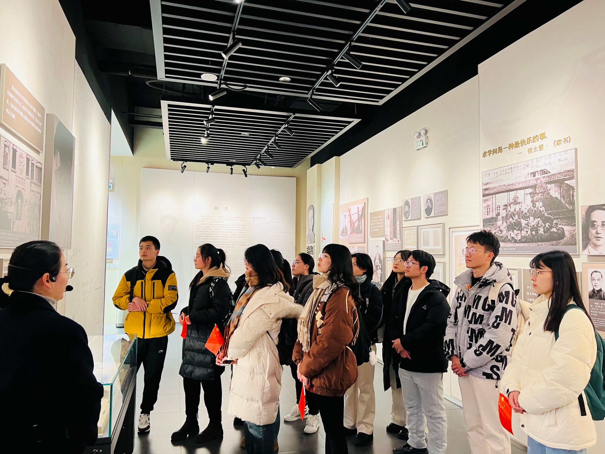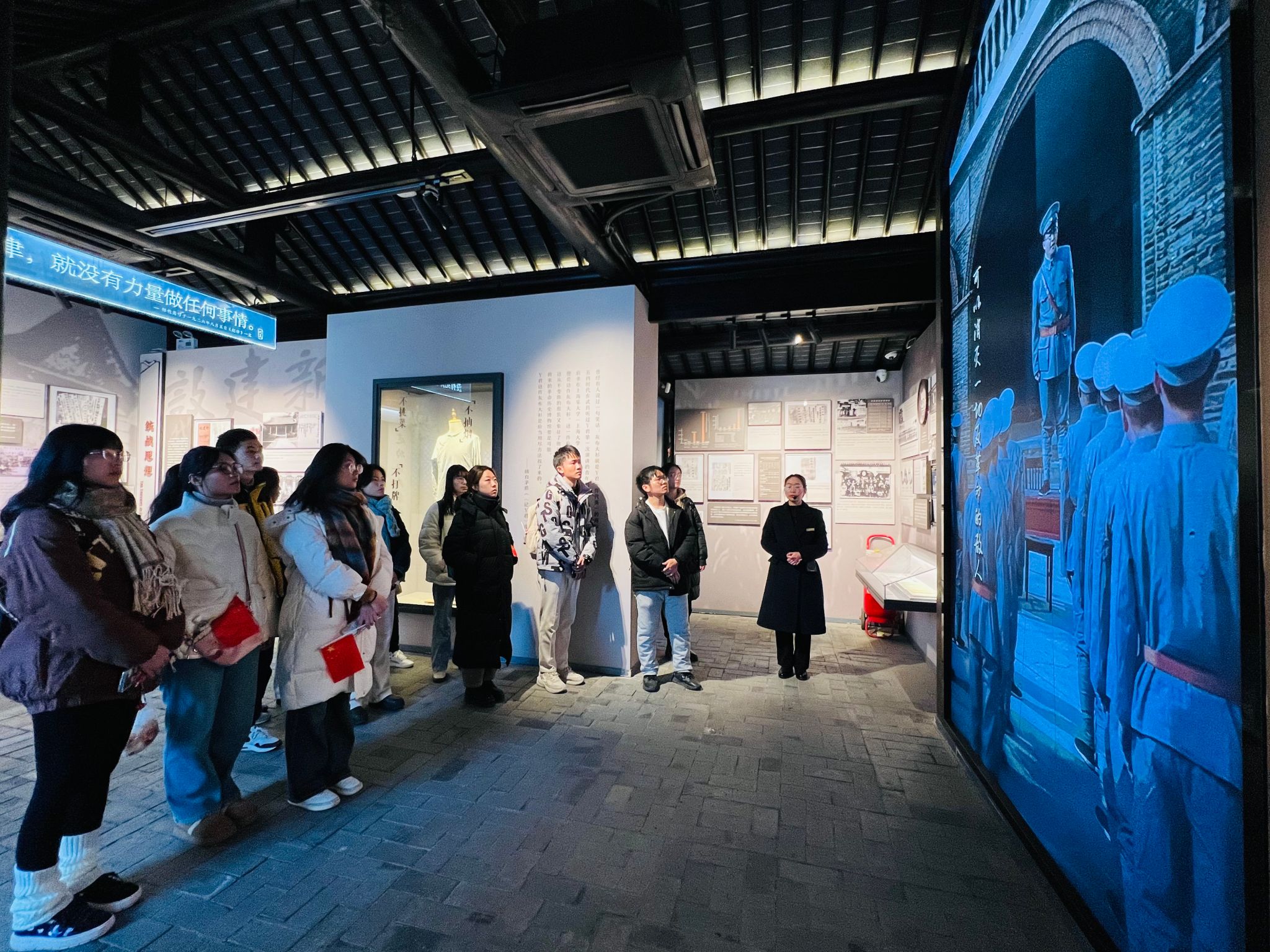 为热烈庆祝中华人民共和国成立75周年,深入学习贯彻党的二十大和二十届三中全会精神,弘扬爱国主义教育,ok138cn太阳集团古天乐本科生党支部、秋白党支部于2024年12月17日在院团委副书记、本科生党支部书记沈东的带队下前往常州三杰纪念馆和青果巷历史文化街区参访研学。
