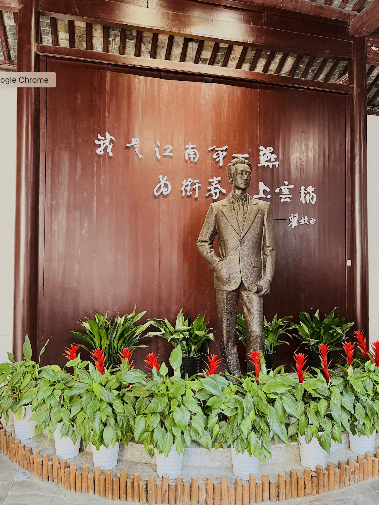 瞿秋白,江苏常州人,中国共产党早期主要领导人之一,伟大的马克思主义者,卓越的无产阶级革命家、理论家、宣传家,中国革命文学事业的重要奠基者之一。纪念馆门额的馆名“瞿秋白同志纪念馆”是由邓小平同志1985年亲笔题写。馆门两侧对称镶嵌着两方铜雕,右手边画面是瞿秋白与列宁,侧重表现的是作为革命家、理论家和宣传家的秋白先生;左手边画面是瞿秋白与鲁迅,侧重表现的是作为文学家、翻译家和文化旗手的秋白先生。
