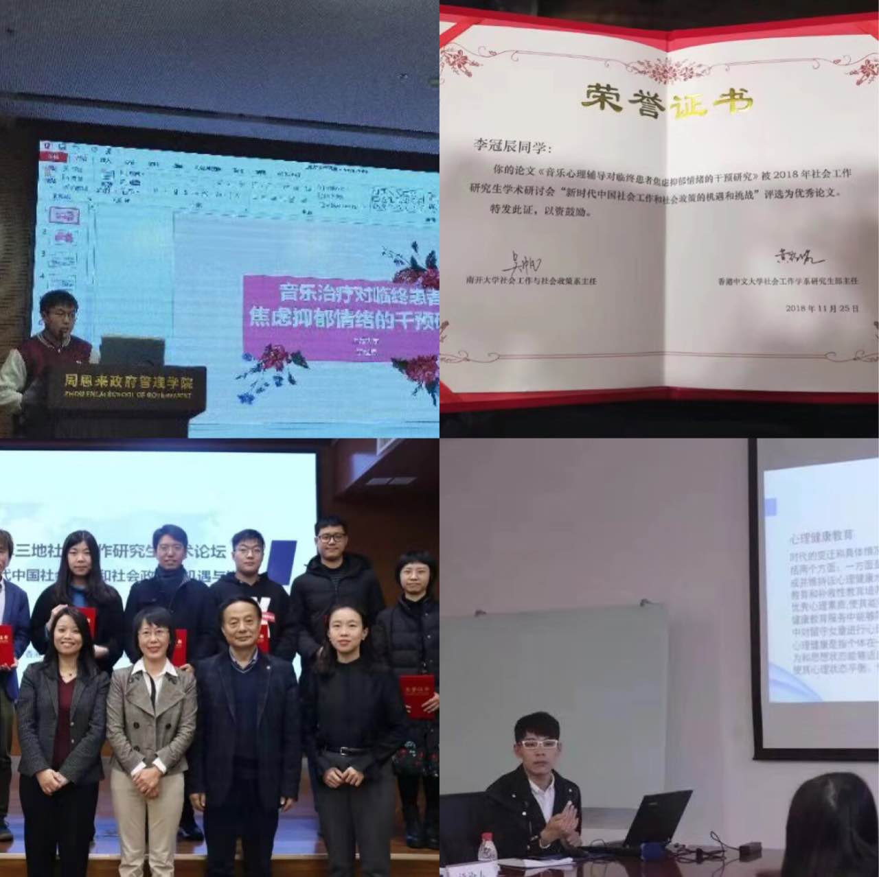<p class="MsoNormal" style="MARGIN: 0pt; TEXT-INDENT: 21pt; mso-char-indent-count: 2.0000"><span style="FONT-SIZE: 10.5pt; FONT-FAMILY: 宋体; mso-spacerun: 'yes'; mso-ascii-font-family: Calibri; mso-hansi-font-family: Calibri; mso-bidi-font-family: 'Times New Roman'; mso-font-kerning: 1.0000pt">2018<font face="宋体">年</font><font face="Calibri">11</font><font face="宋体">月</font><font face="Calibri">24</font><font face="宋体">—</font><font face="Calibri">25</font><font face="宋体">日,“</font></span><span style="FONT-SIZE: 10.5pt; FONT-FAMILY: 宋体; mso-spacerun: 'yes'; mso-ascii-font-family: Calibri; mso-hansi-font-family: Calibri; mso-bidi-font-family: 'Times New Roman'; mso-font-kerning: 1.0000pt"><font face="宋体">新时代中国社会工作和社会政策的机遇与挑战</font></span><span style="FONT-SIZE: 10.5pt; FONT-FAMILY: 宋体; mso-spacerun: 'yes'; mso-ascii-font-family: Calibri; mso-hansi-font-family: Calibri; mso-bidi-font-family: 'Times New Roman'; mso-font-kerning: 1.0000pt">”学术研讨会在南开大学召开。我院<font face="Calibri">2</font><font face="宋体">位</font><font face="Calibri">18</font><font face="宋体">级社会工作专业硕士生李冠辰、程莫洋提交论文并发言。</font></span><span style="FONT-SIZE: 10.5pt; FONT-FAMILY: 宋体; mso-spacerun: 'yes'; mso-ascii-font-family: Calibri; mso-hansi-font-family: Calibri; mso-bidi-font-family: 'Times New Roman'; mso-font-kerning: 1.0000pt"><o:p></o:p></span></p>