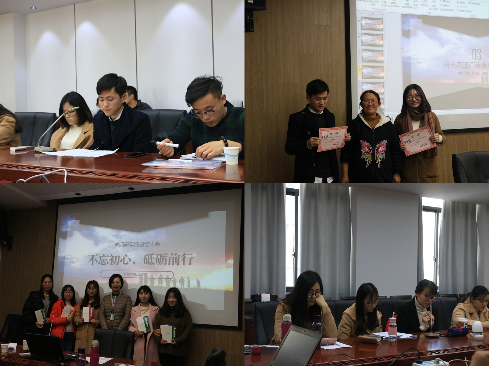 <p> 随后,各部门部长对本学期的工作依次作了详尽的总结汇报,并对新学期的工作进行了展望。学院研究生党总支副书记陈晓冰、学院团总支书记黄品分别对学院党团工作作了总结。学院研会体育部部长揭旋对举办过研究生精彩的体育活动作了总结汇报;宣传部部长王婷婷就负责学院研究生宣传事务作了总结,并提出将一如既往为上大社院研究生公众号吸粉;实践部部长闫鹏飞(副主席)对所策划过的素质拓展活动与配合文艺部举办开展文艺晚会等活动作了总结;学术部部长苗瑞对学院“泮池研学”等活动作了总结;文艺部部长吴静就举办“社会之夜”迎新晚会等活动作了总结;秘书部部长潘美瑜对各类会议准备和财务报销等工作作了总结汇报。大家纷纷表示将始终“不忘初心 砥砺前行”,今后也一直会以饱满的热情与积极的态度参与到研究生的各项活动之中,保质保量地完成各项任务,更好地为ok138cn太阳集团古天乐研究生服务。 <br /></p>