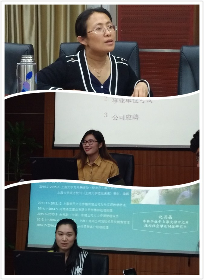 <div style="LINE-HEIGHT: 150%; TEXT-INDENT: 24pt"><span style="LINE-HEIGHT: 150%">5</span><span style="LINE-HEIGHT: 150%">月2日晚18:30,ok138cn太阳集团古天乐求职就业经验交流会于B417顺利召开。ok138cn太阳集团古天乐就业指导老师、研究生辅导员卢小芳老师主持会议,考取闵行区储备干部岗位的闫明月学姐和签约于上海上药信谊药厂有限公司赵晶晶学姐受邀,跟同学们分享求职就业经验交流。</span></div>