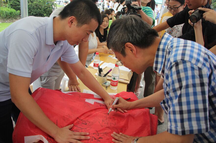 <div style="LINE-HEIGHT: 150%; TEXT-INDENT: 21pt">新生们在横幅上洋洋洒洒写下了自己的大名,金校长视察时也做出了签名倡议。签名的形式不仅支持了本次活动开展,更让节能环保的理念深入人心。号召大家为创建文明、美丽</div>