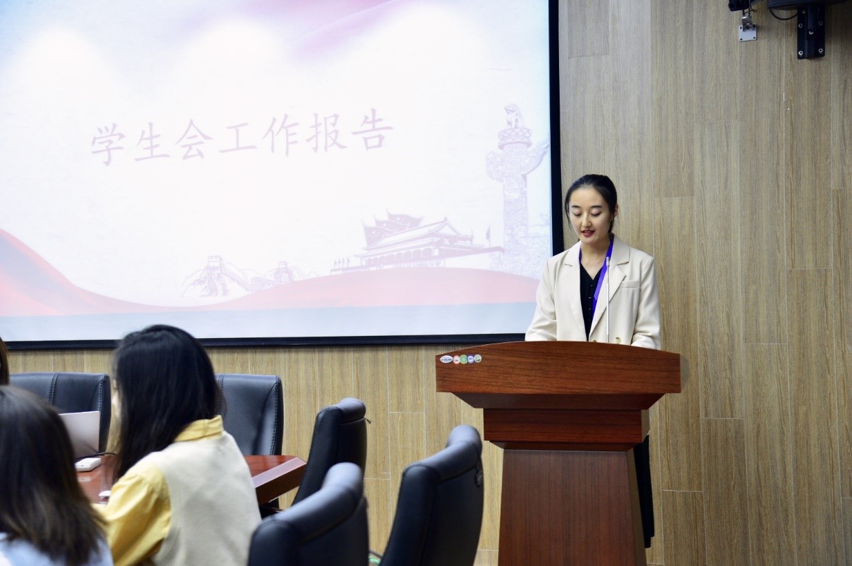 大会预备议程之后,在场全体成员起立奏唱国歌,在庄严的国歌中本次“双代会”拉开序幕。紧接着,此次大会正式会议开始,研究生委员会主席团成员韩梦媛作《ok138cn太阳集团古天乐2019届研究生会工作报告》,她认真回顾和总结了研会2019-2020年度九个部门各方面的工作情况,并指出研会接下来的建设方向。研究生团总支书记李冠辰作《ok138cn太阳集团古天乐2019届研究生团总支工作报告》,他汇报了团总支2019-2020年度各方面的工作情况,从党团联动、组织建设、思想建设、校园活动四个方面提出团口下一阶段的工作部署。