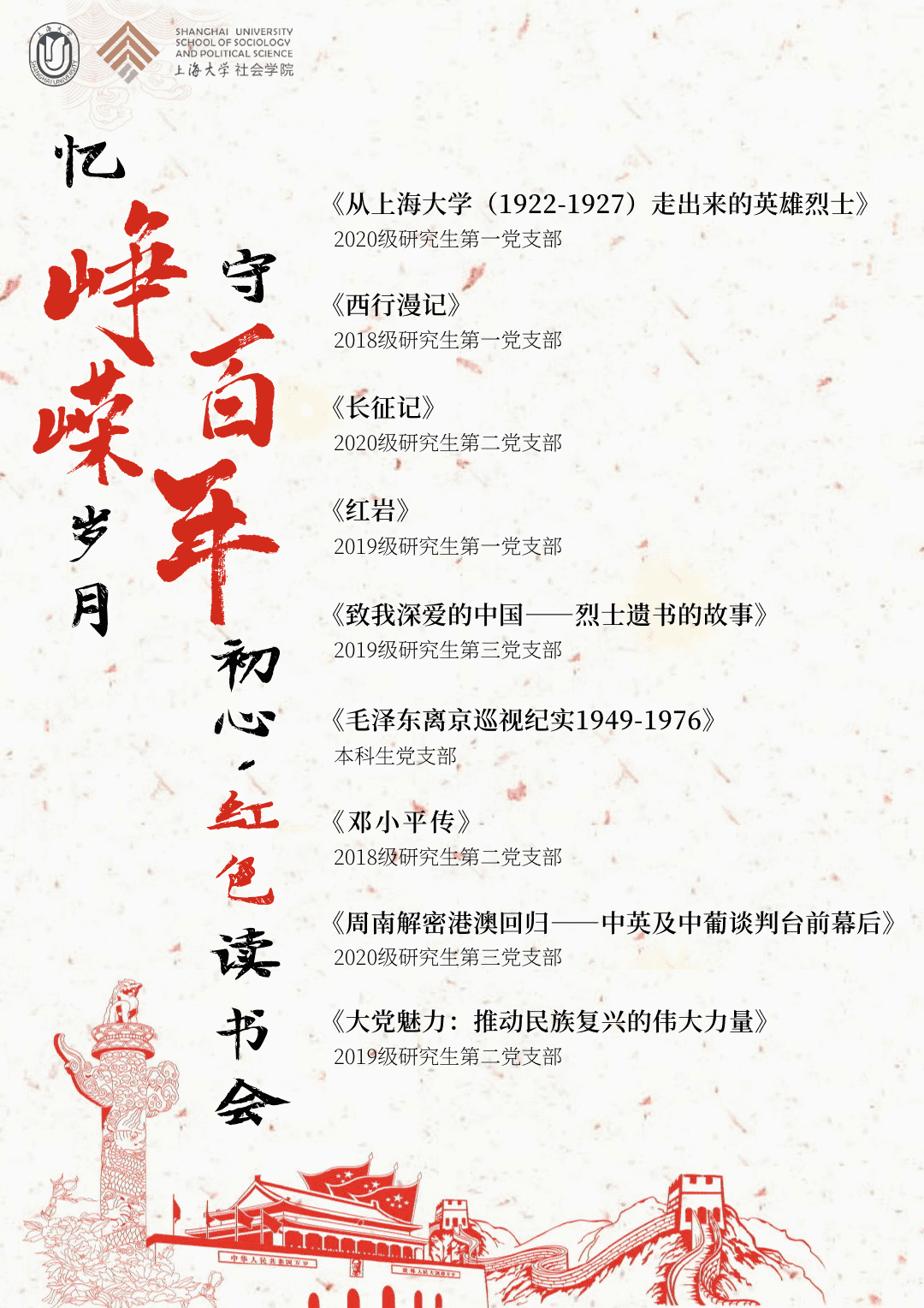 “忆峥嵘岁月,守百年初心”——“1921”系列活动之9场红色读书会预告