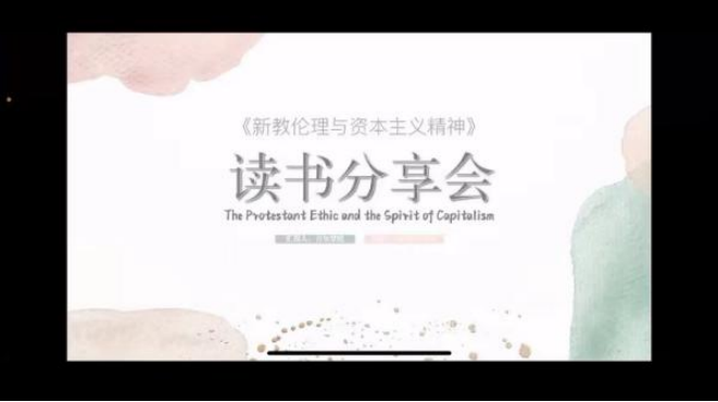 吉登斯组围绕《新教伦理与资本主义精神》一书中的导论、第一及第二章进行交流,分别就书籍简介、读书感悟、未来展望三部分开展读书会。大家对书中提及的“理性精神”、西方资本主义等话题兴趣浓厚,以此进行了讨论。其中,方旭玮同学着重表示“书中作者将‘理性精神’贯彻到底”这一观点,韦伯运用大量例证和不同文化对比论证西方的先进之处。