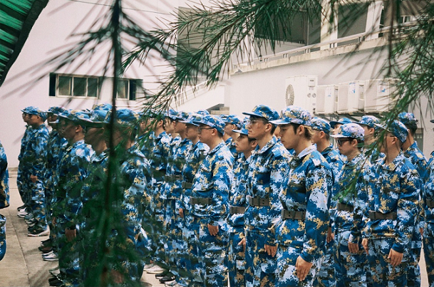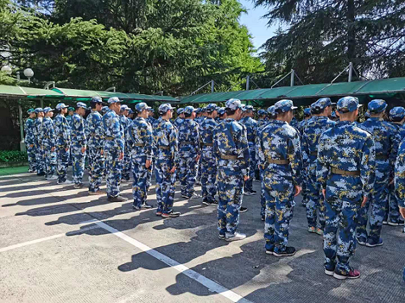 早上太阳还未露脸,云层遮住阳光带来清爽的天气,早饭过后同学们首先在训练场地进行了军容军貌的整顿。军装的整齐划一体现了团队的高昂士气,有助于培养团队意识,在保持集体着装高度统一的状态下,同学们意识到了军装的神圣性,在接下来的训练中更是抖擞精神,努力坚持。