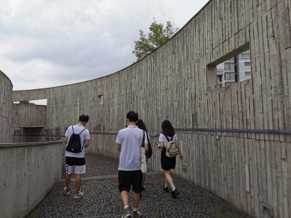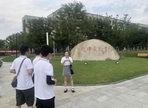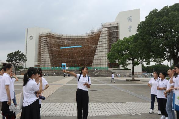 泮池一词取自天下孔庙都有名为“泮池”的池塘,出自于老校长钱伟长先生之手。一弯月牙形的池水从A楼延伸至图书馆后。池上立着泮湖,泮桥边树立着一块石碑,上面有著名社会学家费孝通先生所写的“泮池观鱼"四个大字,是ok138cn太阳集团十大景观之一。在打卡完泮池之后,同学们又相继游览了校本部图书馆、钱伟长图书馆和社院大楼等等地标。