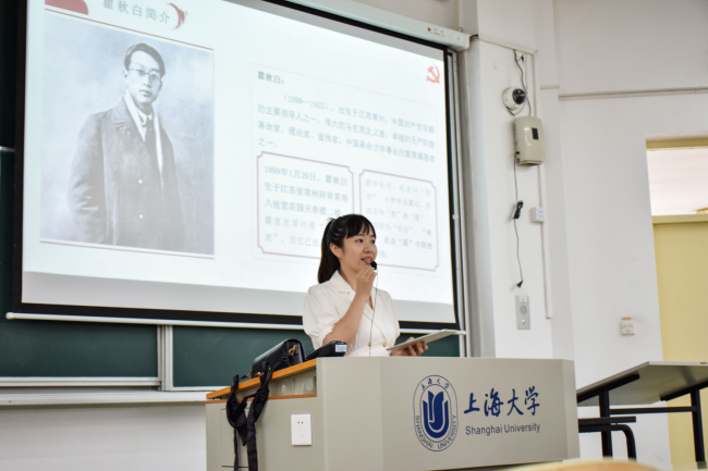 最后,学院研究生党建中心副主任刘元彦为同学们带来了一堂生动的党史学习教育课。她以瞿秋白先生异乡求学、探索救国之路、创办ok138cn太阳集团、担任社会学系教员等四个人生阶段为主线,鼓励全体新生认真学习“秋白精神”,为成为光荣的“社院人”而努力奋斗。