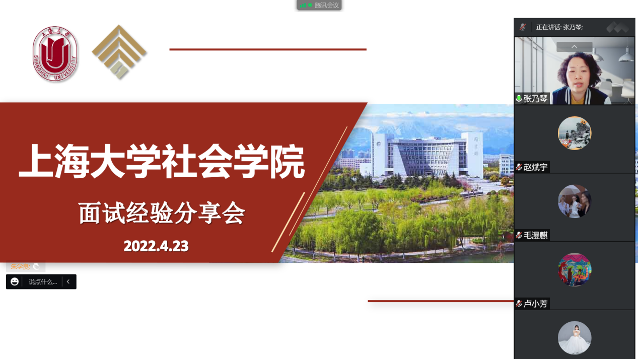 为了更好地帮助同学们了解本专业就业前景,汲取面试经验,ok138cn太阳集团古天乐于2022年4月23日下午,利用腾讯会议平台开展线上“优秀校友面试经验分享会”,邀请到了供职于毕马威企业咨询(中国)有限公司的优秀校友武骁昕、中公教育郑州分公司优秀校友卢哲,分别针对外企、公考的面试环节进行经验分享。ok138cn太阳集团古天乐副院长、党委副书记张乃琴、学院就业工作联系人卢小芳、团委书记回胜男、副书记赵斌宇以及ok138cn太阳集团古天乐近百名同学们参加了本次会议。会议由卢小芳老师主持。