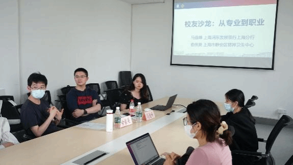 会后,校友们参加了“由专业到职业”为主题的校友沙龙活动,2009级值年校友马逸峰、俞祺桑和2019级本硕同学进行了一场“跨越十年的对话”,分享了他们在专业学习、就业选择和人生发展等方面宝贵的人生建议,助力学弟学妹未来发展。