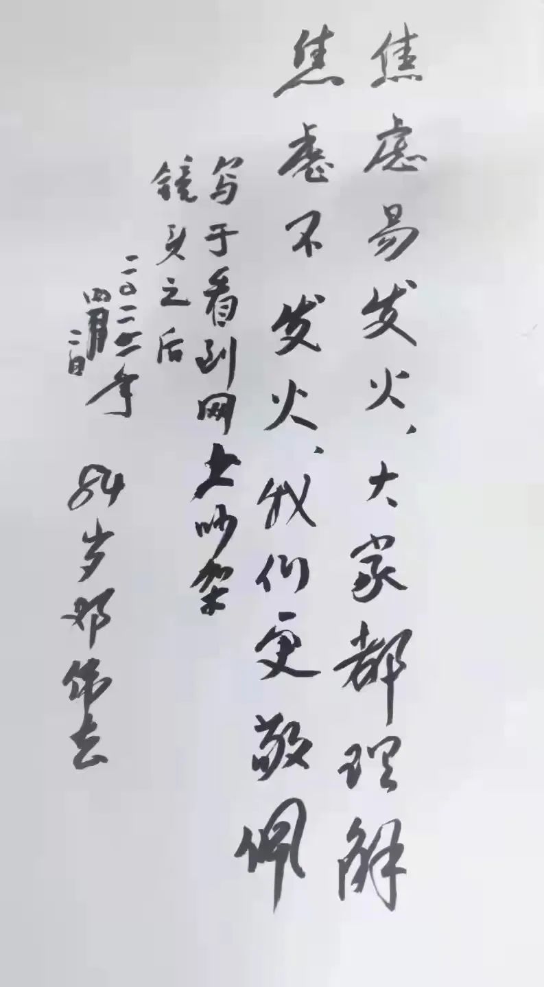 最近我给群友发去了我用毛笔写的“焦虑易发火,大家都理解;焦虑不发火,我们更敬佩。”几位群友相继提出,叫我说一说写这两句的背景。如实地说,我是这样考虑的。