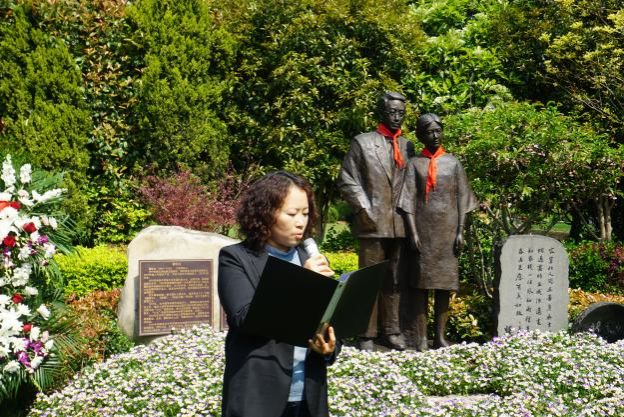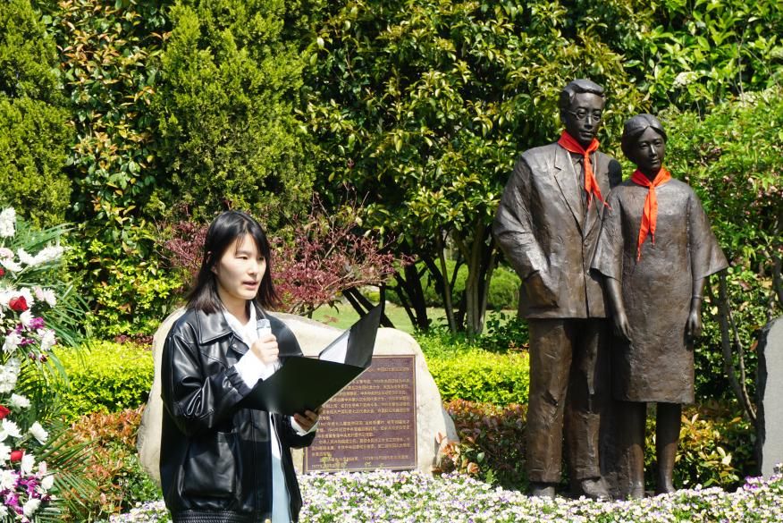 上午10时30分,同学们肃立于瞿秋白同志雕像前。纪念仪式庄重而深沉,全体人员在瞿秋白同志雕像前默哀并三鞠躬,以示缅怀与敬仰。本科生党员代表上前擦拭墓碑,党员们向革命英烈敬献鲜花,鞠躬默哀。