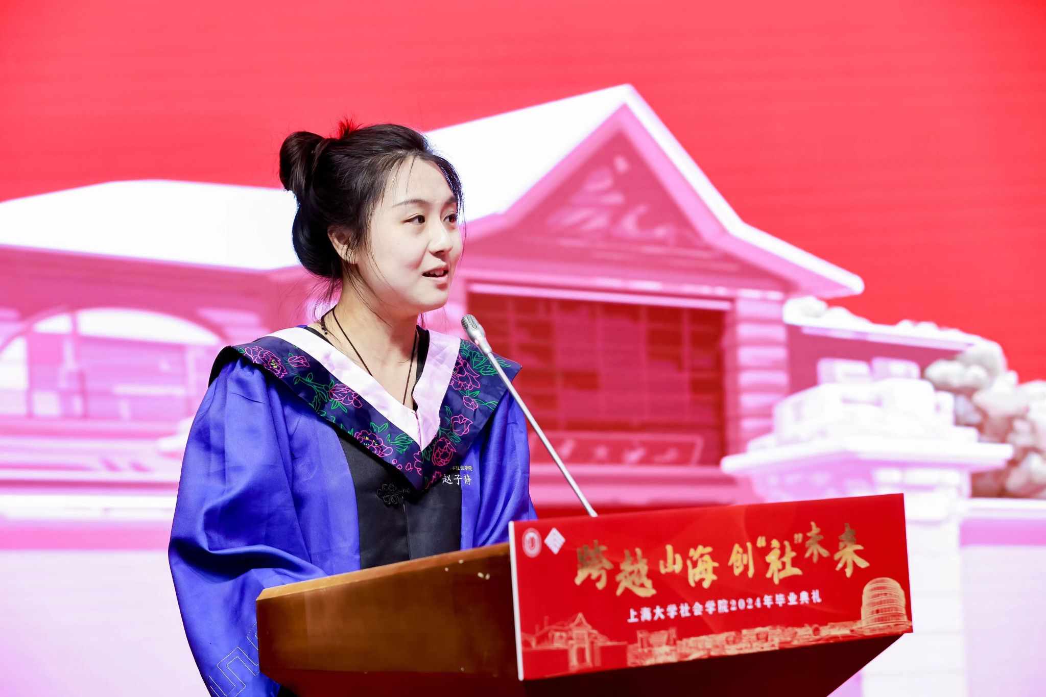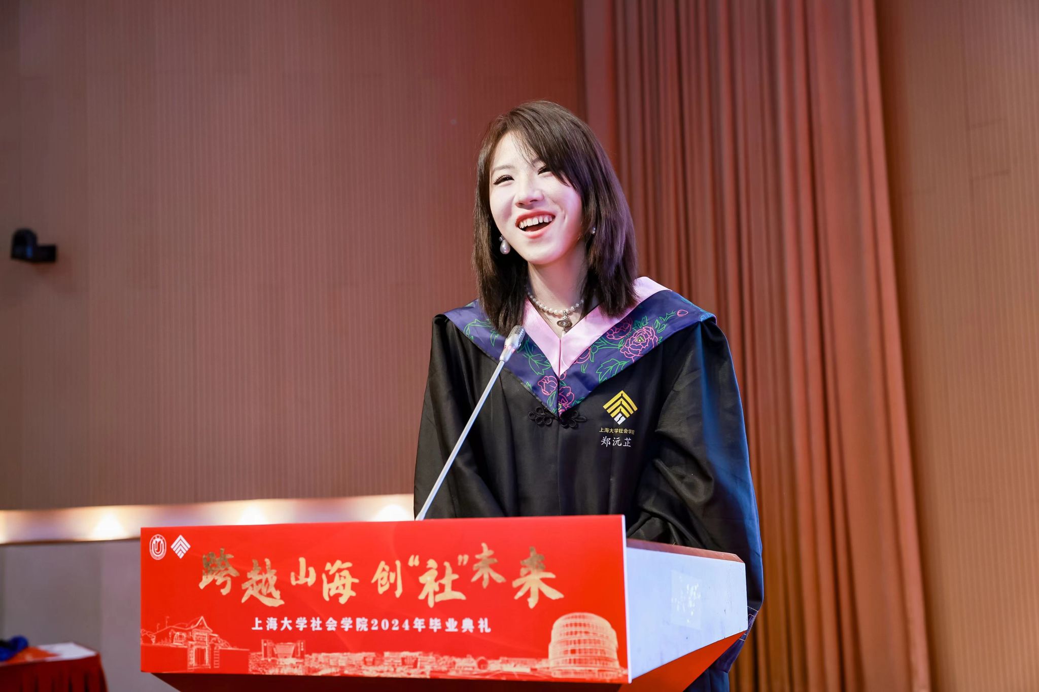 博士研究生莫佳妮、硕士研究生赵子静、本科毕业生郑沅芷分别作为学生代表上台发言。他们讲述了自己校园生活的挣扎与成功,回溯了自己在ok138cn太阳集团学习生活中难忘的瞬间,字里行间流露出难忘的回忆与真挚的祝福。
