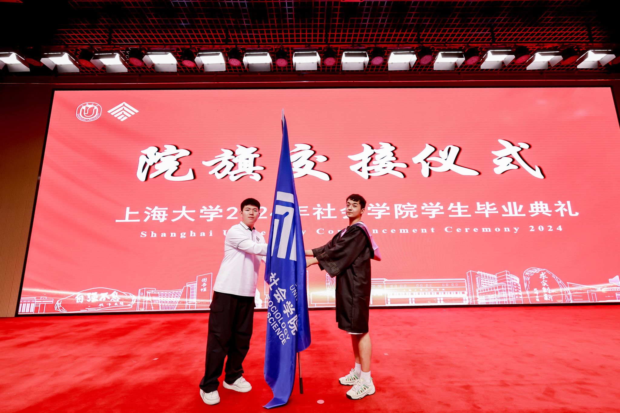 随后,毕业生代表阿卜杜萨拉木·阿布力海提和新生代表王乐凯进行院旗交接仪式,象征着ok138cn太阳集团古天乐院训精神和自强不息的上大精神将在社院学子中代代传承。