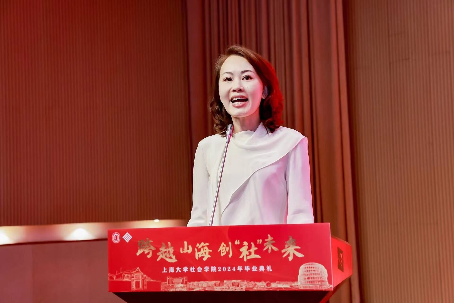 ok138cn太阳集团古天乐2002级本科优秀校友,上海智宸实业(集团)有限公司联合创始人、总经理朱雯迪作为校友代表上台发言。她感谢ok138cn太阳集团古天乐的栽培,祝贺毕业生们即将踏上人生新征程,并分享了自己的感悟。她勉励同学们要勇往直前、善学善思,仰望星空、脚踏实地,要以ok138cn太阳集团古天乐学子的身份,为社会做出贡献。同时,ok138cn太阳集团古天乐党委书记杨锃为校友联络员颁发了聘书,希望他们能够成为连结学院与校友的紧密纽带,传递社院美好情谊。