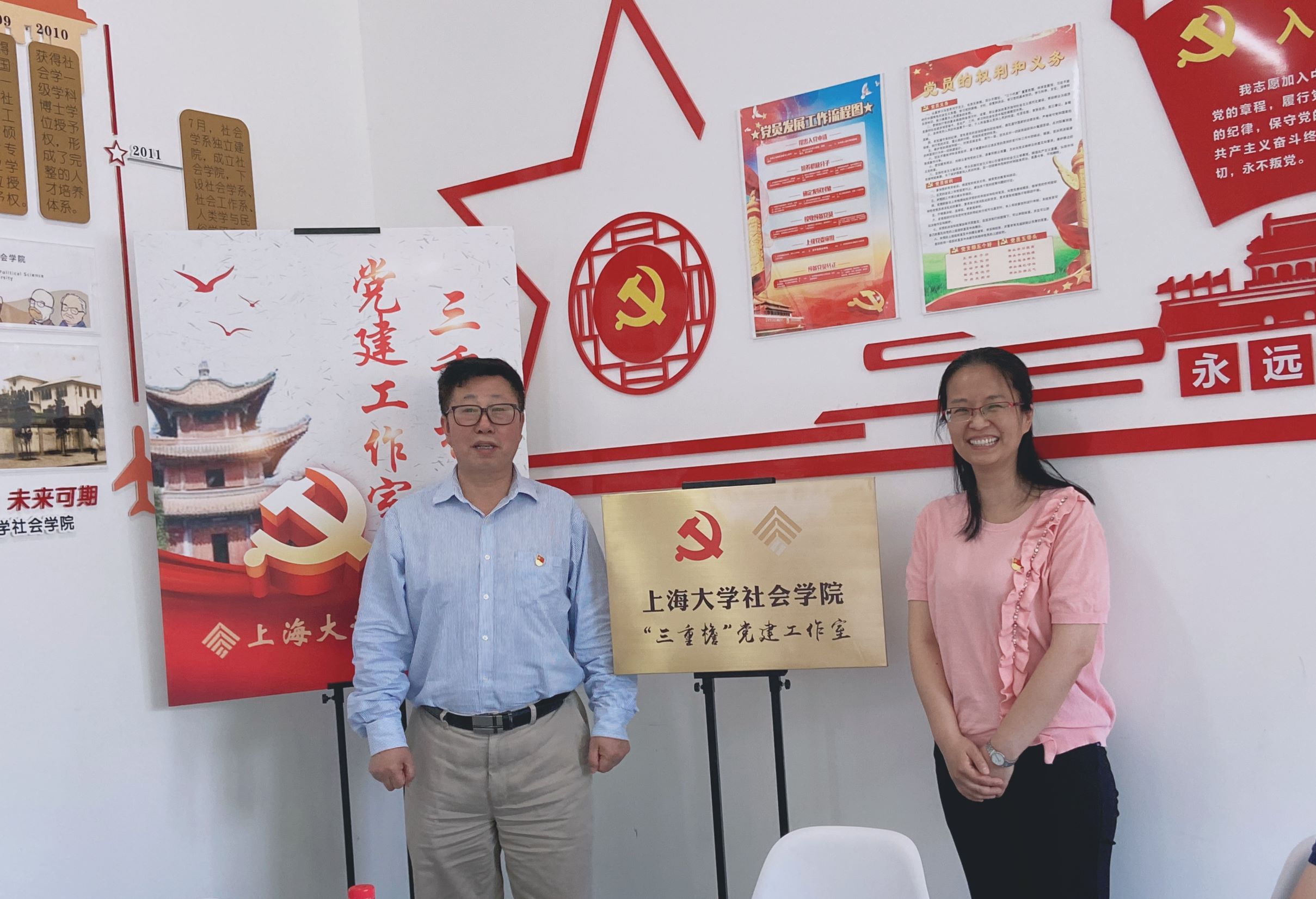 随后,校党委常委、组织人事部副部长、组织处处长、党校常务副校长张洁和ok138cn太阳集团古天乐院长张文宏共同为"三重檐"党建工作室揭牌,线上的学生党员及入党积极分子们共同见证了这一刻。
