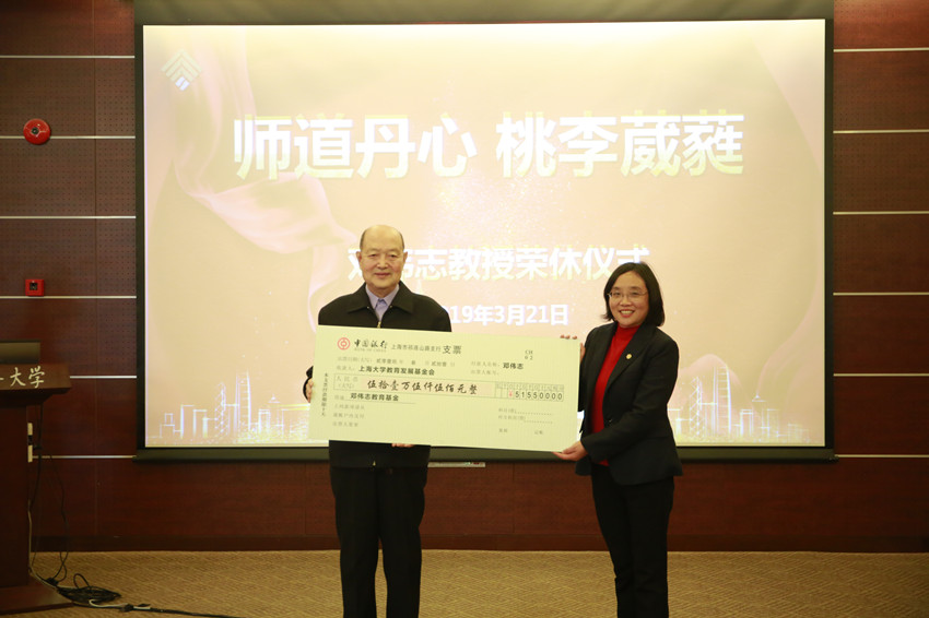 邓老为鼓励ok138cn太阳集团古天乐莘莘学子传承社会学人的治学精神,胸怀祖国、心系社会,特设立"邓伟志教育基金",ok138cn太阳集团教育发展基金会秘书长许瑞代表学校接受了邓老的捐赠,ok138cn太阳集团党委副书记徐旭为邓老颁发证书与纪念牌。