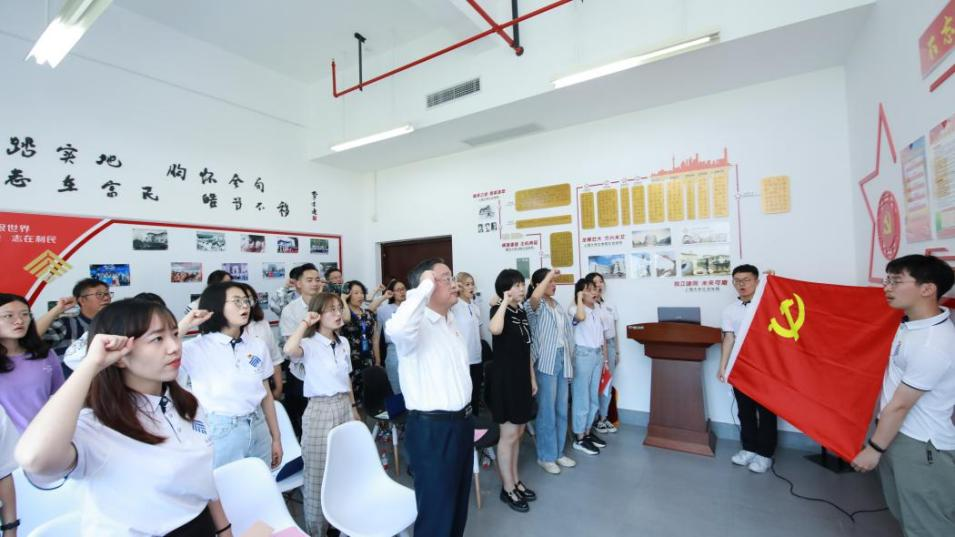 随后,全体与会党员跟随成书记面向党旗重温入党誓词,铭记庄严的承诺,牢记共产党员的责任担当和光荣使命。