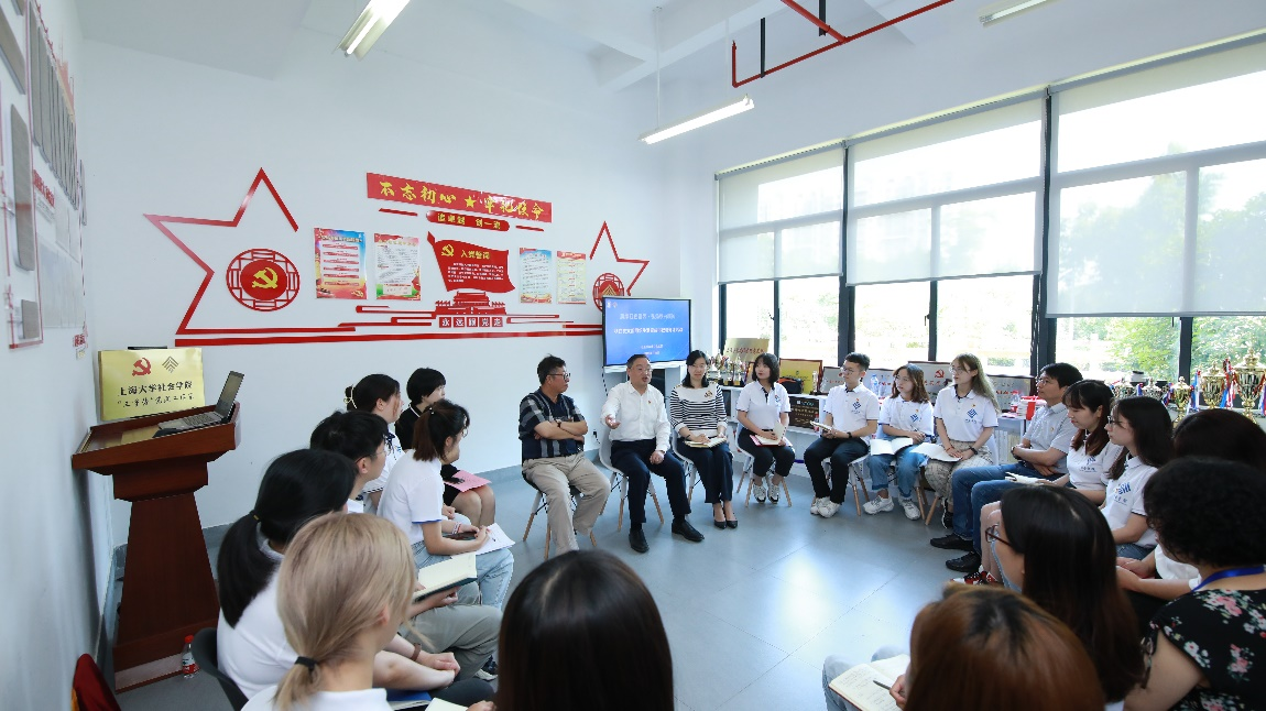 百年上大,红色传承。成书记从中国共产党与老ok138cn太阳集团的历史出发,讲述了瞿秋白与ok138cn太阳集团的历史渊源,展现了老上大人坚定的革命精神。秋白党支部正是为了继承和弘扬老上大瞿秋白等革命先辈的红色基因而成立,成书记对此表示高度的重视与肯定,并对秋白支部的建设提出了三点要求和期许:一是希望支部每位党员都要会唱《国际歌》,以歌明志,并要勇于挑战俄文版和法文版等多种语言版本,在关键时候敢于亮明秋白支部党员身份。二是要参观寻访瞿秋白纪念馆、瞿秋白故居,在实地参观中感受伟人的思想伟力,深刻了解其精神内涵,并深入思考当代青年如何更好地传承秋白精神。三是要志存高远,做坚定的马克思主义学习者研究者传播者。要通读瞿秋白文集等作品,全面了解瞿秋白的思想,继承和发扬秋白精神,推动新时代马克思主义的发扬光大。