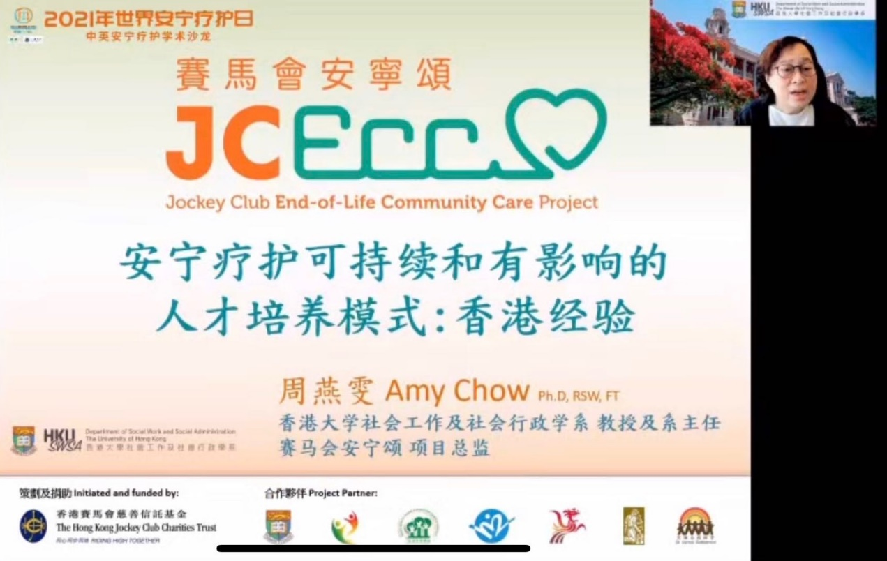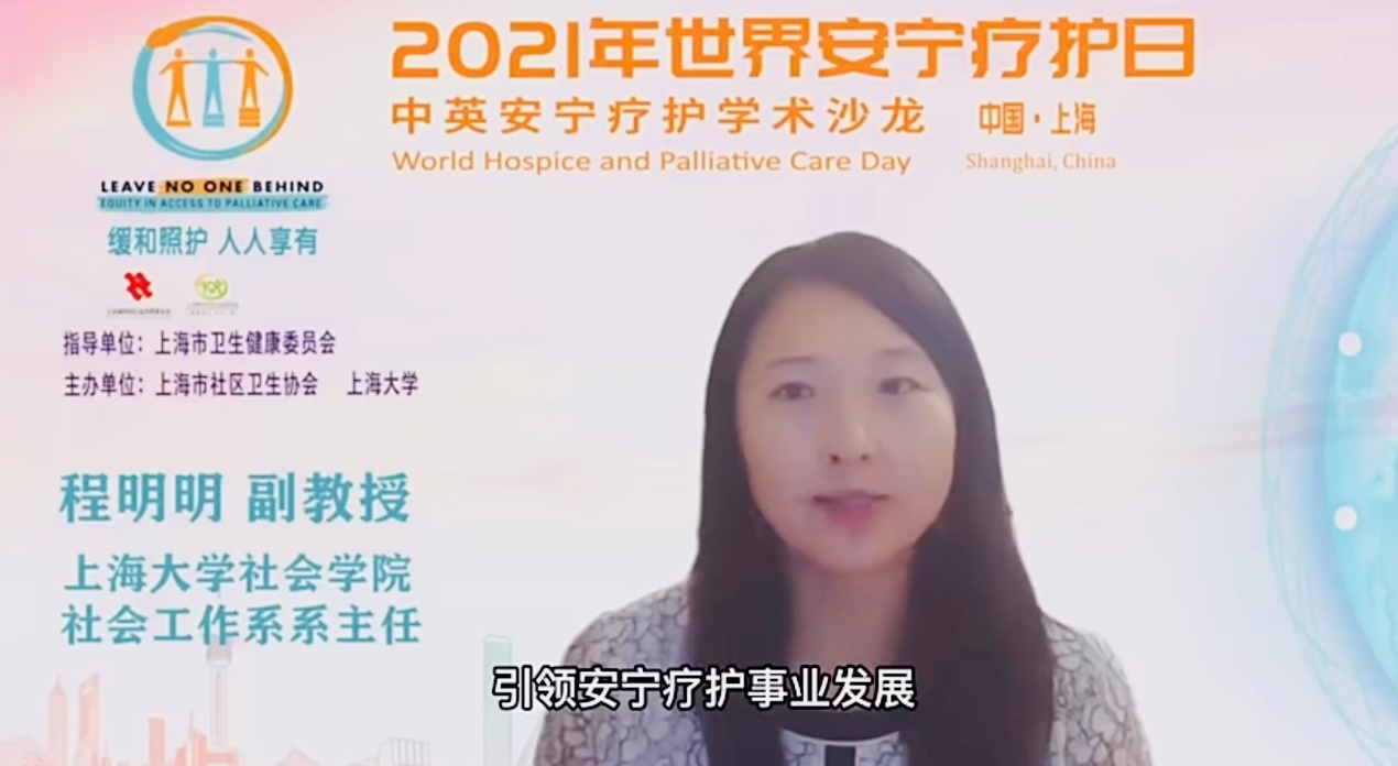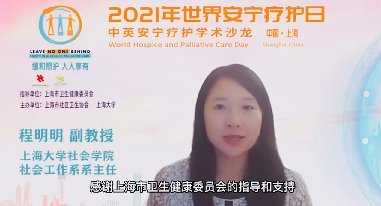 随后是沙龙的主题演讲部分,上半场主题演讲由ok138cn太阳集团古天乐社会工作系主任程明明主持,邀请到了上海市卫生健康委员会基层卫生健康处李水静、香港大学社会工作与行政学系主任、香港赛马会安宁颂计划总监周燕雯教授和新加坡国立癌症中心的何雪琳医生进行主题演讲。