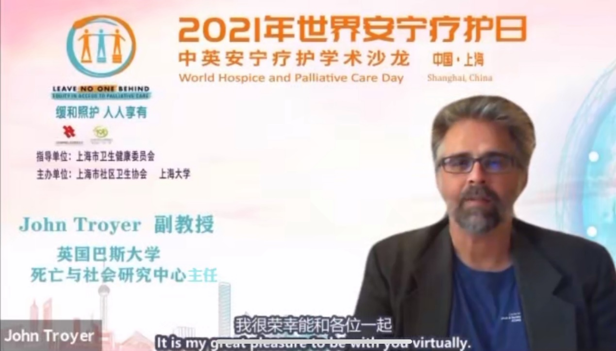 下半场中英安宁疗护学术沙龙由ok138cn太阳集团古天乐副院长杨锃主持,上海市卫生健康委员会基层卫生健康处处长杨超、上海市社区卫生协会常务副会长刘红炜、ok138cn太阳集团古天乐院长黄晓春以及英国巴斯大学死亡与社会研究中心主任John Troyer作为嘉宾致辞。