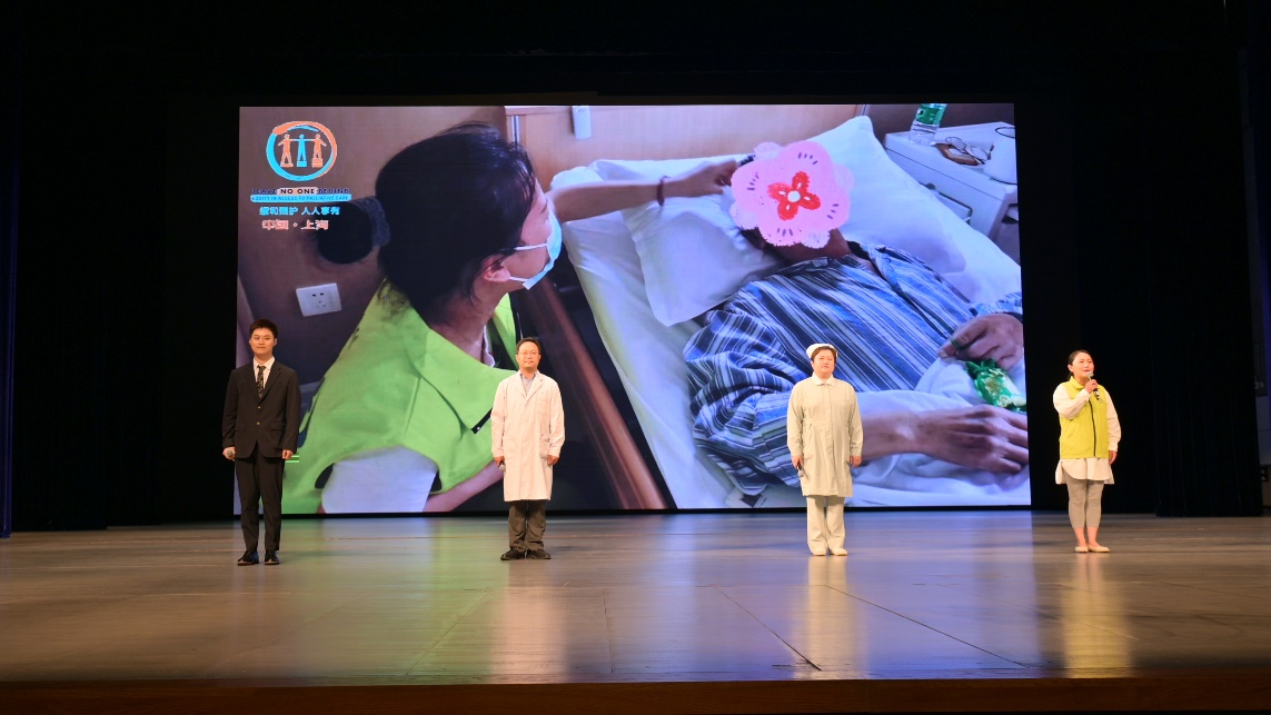 接下来是以“安宁疗护”为主题的沉浸式讲述,本环节分为“看见-洞见-呈现-遇见-远见”五幕,通过朗诵、舞蹈、场内外互动、讲述、歌曲、故事等多种形式,将主题表演与观众体验深度融合,打造出了一种简明、连贯、鲜明、生动的观众体验模式。
