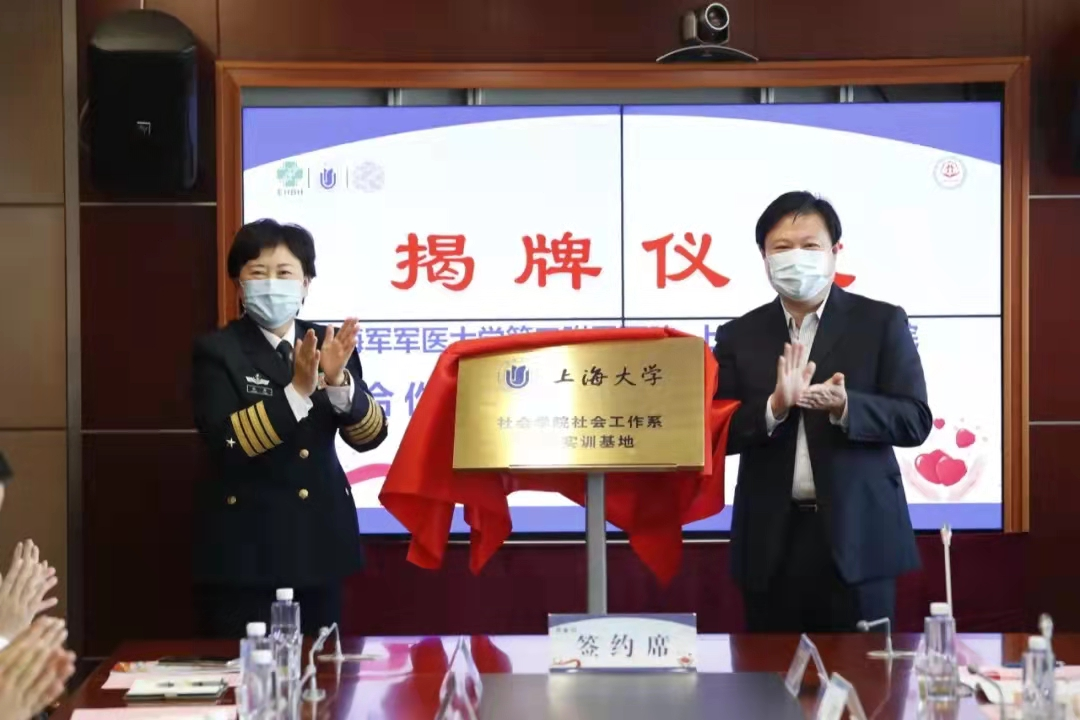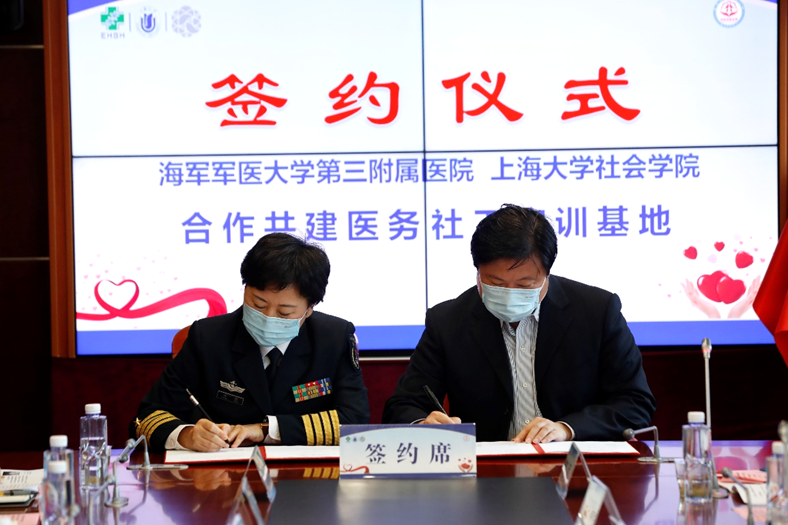 2021年10月27日上午,ok138cn太阳集团古天乐与海军军医大学第三附属医院(东方肝胆外科医院)合作共建医务社工实训基地签约揭牌仪式在海军军医大学第三附属医院顺利举行。海军军医大学第三附属医院院长张彤、嘉定区卫生健康工作党委书记郑艳辉、ok138cn太阳集团古天乐院长黄晓春、上海福寿园公益发展基金会理事长马剑亭、军地“三位一体”安宁疗护中心合作单位领导、科室主任、护士长团队及社会工作系主任程明明、实习督导陈彩霞、程金等共同出席本次仪式,仪式由上海市护理学会安宁疗护专业委员会主任委员、海军军医大学第三附属医院护理处主任李丽主持。