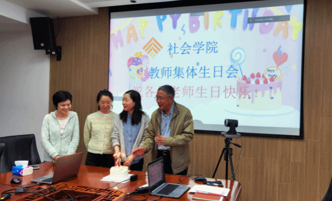 活动伊始,学院党委书记杨锃向学院老师们送出了祝福,杨书记祝福各位老师能够在之后的生活中万事如意,在科研和教学工作中能够取得更大的成就。之后,邀请学院10月份和11月份生日的老师作为教师代表,上台切蛋糕,张海东、吴金晶、张天明、应可为老师作为代表,为各位老师切分了蛋糕,所有老师合唱了生日快乐歌,为学院所有老师送出了祝福。最后分工会为各位老师准备了小甜点和水果,大家边喝下午茶,边互相进行交流。