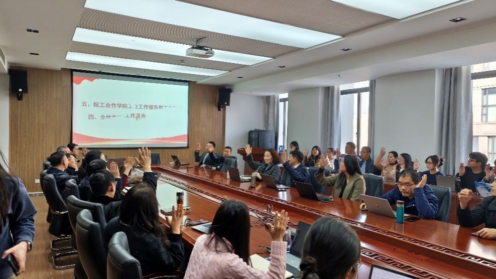 首先,学院党委书记、代院长杨锃作2025年学院行政工作报告。报告立足学院发展全局,全面回顾了2025年度各项核心业绩指标的完成情况,系统梳理了教学科研、人才培养、学科建设、师资队伍发展、社会服务等领域的工作亮点与突破成果。同时,杨锃书记结合学科发展趋势与学院实际,明确了2026年学院的重点工作目标与实施路径,为后续工作开展指明了方向。全体教职工认真聆听报告,围绕报告内容展开热烈讨论,一致认可报告对学院发展的总结与规划,最终以举手表决的方式全票通过该报告。