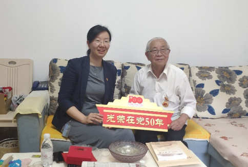 在中国共产党百年华诞之际,为了增强党员的荣誉感、归属感、使命感,根据中共中央及上海市市委组织部的部署,我院党委书记沈艺老师、副书记张乃琴老师带队为学院六位退休老师颁发了“光荣在党50年”纪念章,并送去学院党委的关怀和慰问。