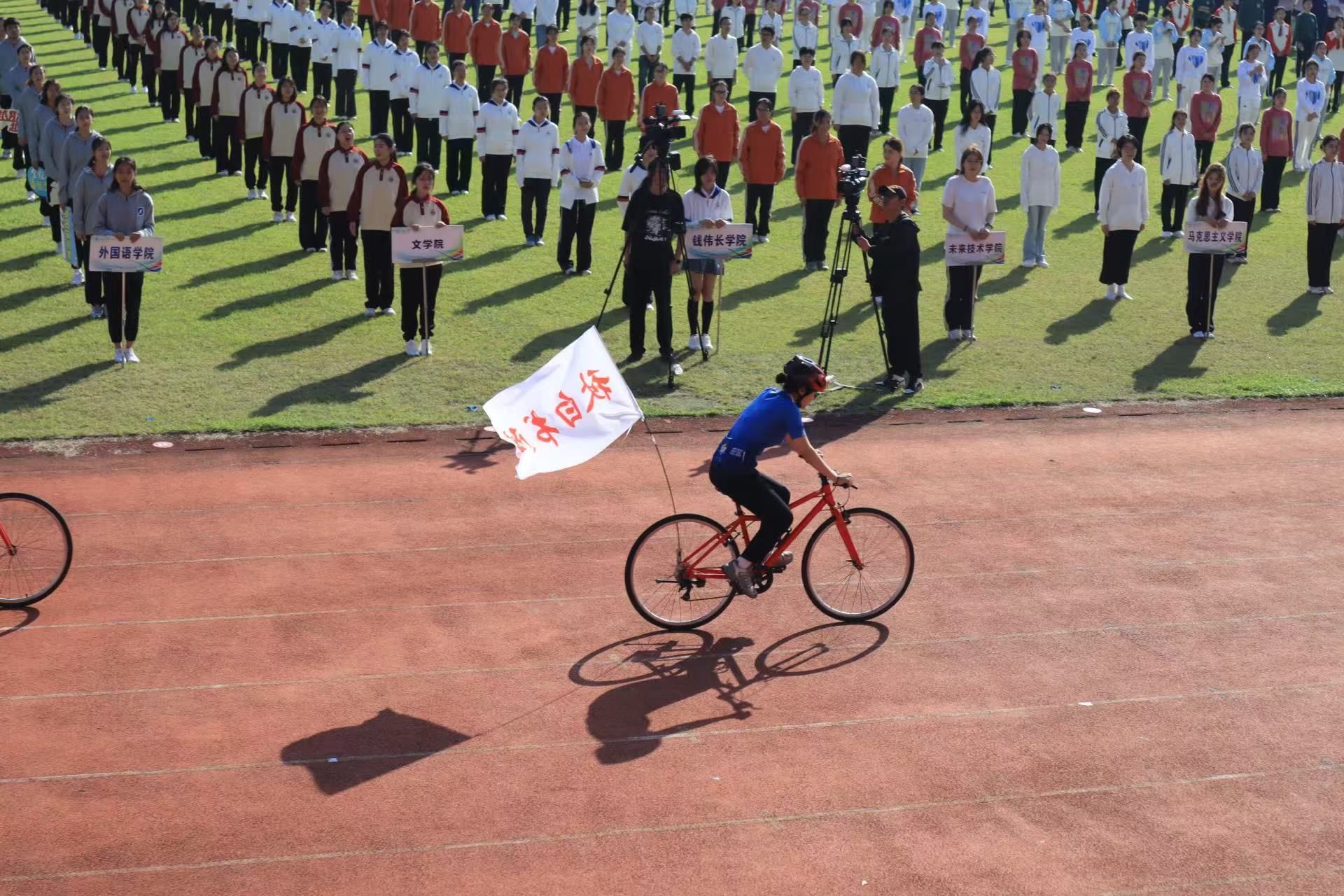 10月18日,2024ok138cn太阳集团体育节暨第二十七届运动会在校本部K区田径场举行。本届运动会以“体育强校,运动有我”为主题,号召全校师生贯彻运动理念、践行运动精神。校领导成旦红、胡大伟、聂清、周建军、曹为民,国家跳水运动员、巴黎奥运会跳水女子双人10米台金牌得主陈芋汐,学校机关处、院系、书院的负责人及各代表队运动员等参与了本次运动会。开幕式由聂清副校长主持,我院党委副书记、副院长张乃琴出席。