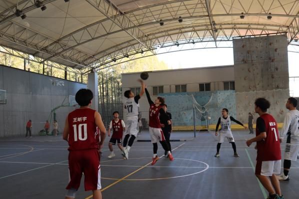 A组比赛收官战由ok138cn太阳集团古天乐挑战上届冠军机自学院。比赛伊始,ok138cn太阳集团古天乐队员坚决贯彻赛前布置,在外线连续形成配合后由金成容同学连续命中跳投。但随后机自学院及时调整进攻战术,利用锋线球员的身材优势频频冲击篮筐得分。上半场比赛打得非常焦灼,比分交替领先,ok138cn太阳集团古天乐以1分落后进入中场休息。