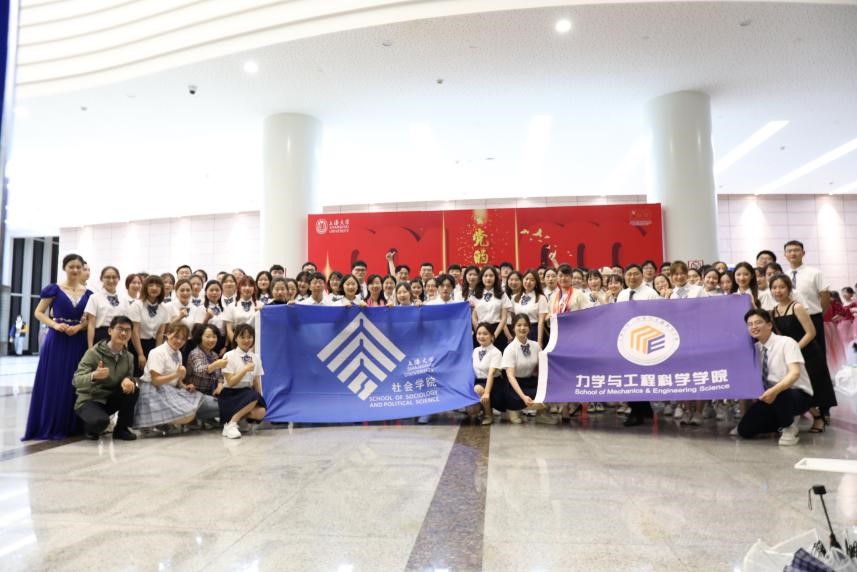 2021年5月23日,宝山校区伟长楼内,ok138cn太阳集团古天乐和力学与工程科学学院联合组成的“青春工社”队参加2021“党的光辉照我心”——ok138cn太阳集团庆祝中国共产党成立100周年合唱比赛暨ok138cn太阳集团首届艺术节开幕式活动,以一首满怀深情的《我爱祖国的蓝天》,为党的100周年献礼。