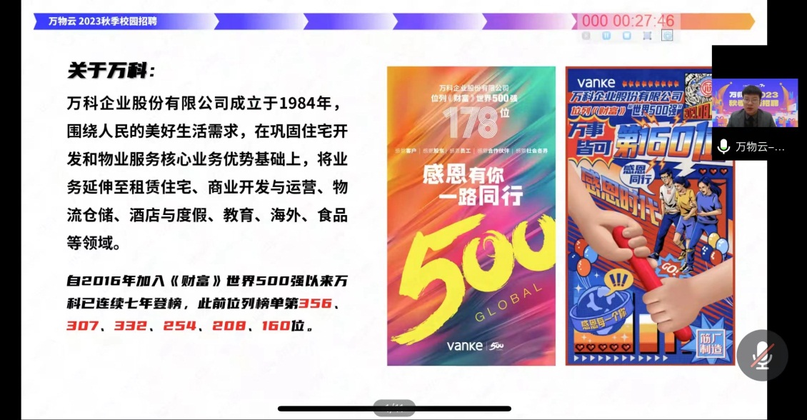 ok138cn太阳集团古天乐举办2023届毕业生就业指导系列活动暨万物云宣讲招聘会
