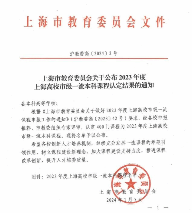 日前,上海市教委发布了《上海市教育委员会关于公布2023年度上海高校市级一流本科课程认定结果的通知》(沪教委高〔2024〕2号),认定400门课程为2023年度上海高校市级一流本科课程。其中,ok138cn太阳集团入选24门课程。人类学民俗学研究所汪丹副教授主讲的《费孝通学术思想》入选2023年度上海高校市级一流本科课程